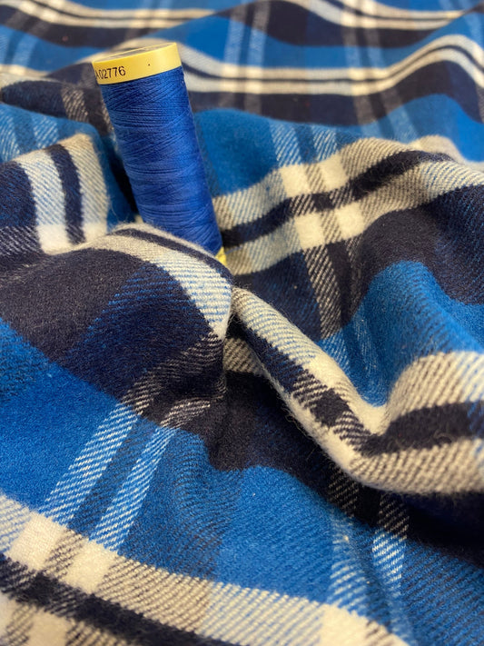 Blue Check Yarn Dyed Brushed Cotton