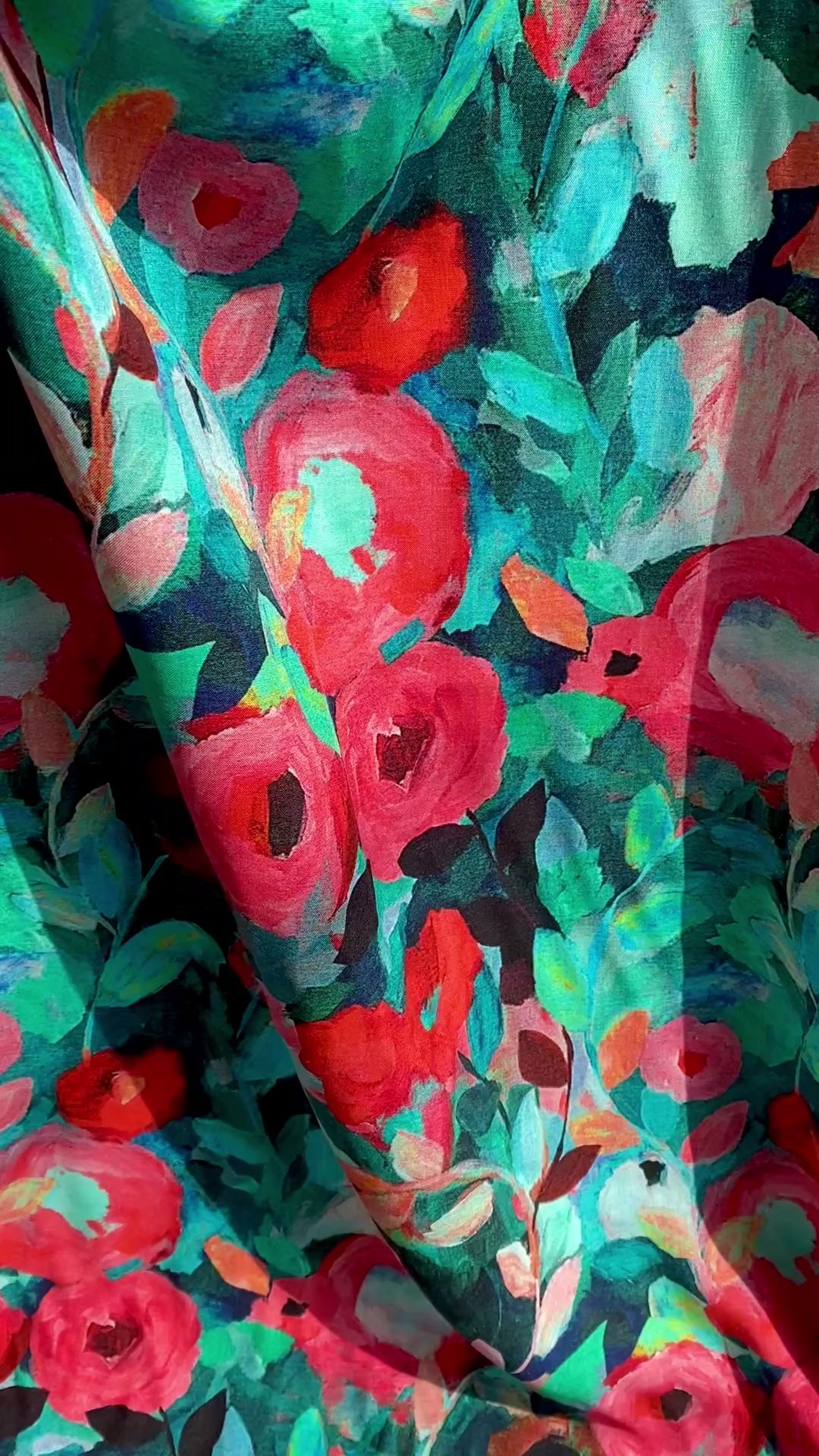 Description – Our stunning floral Viscose Poplin Digital Print is lightweight with lovely drape and a beautiful silky touch. Ideal for creating beautiful dresses, sarongs, blouses, shirts, shawls etc.